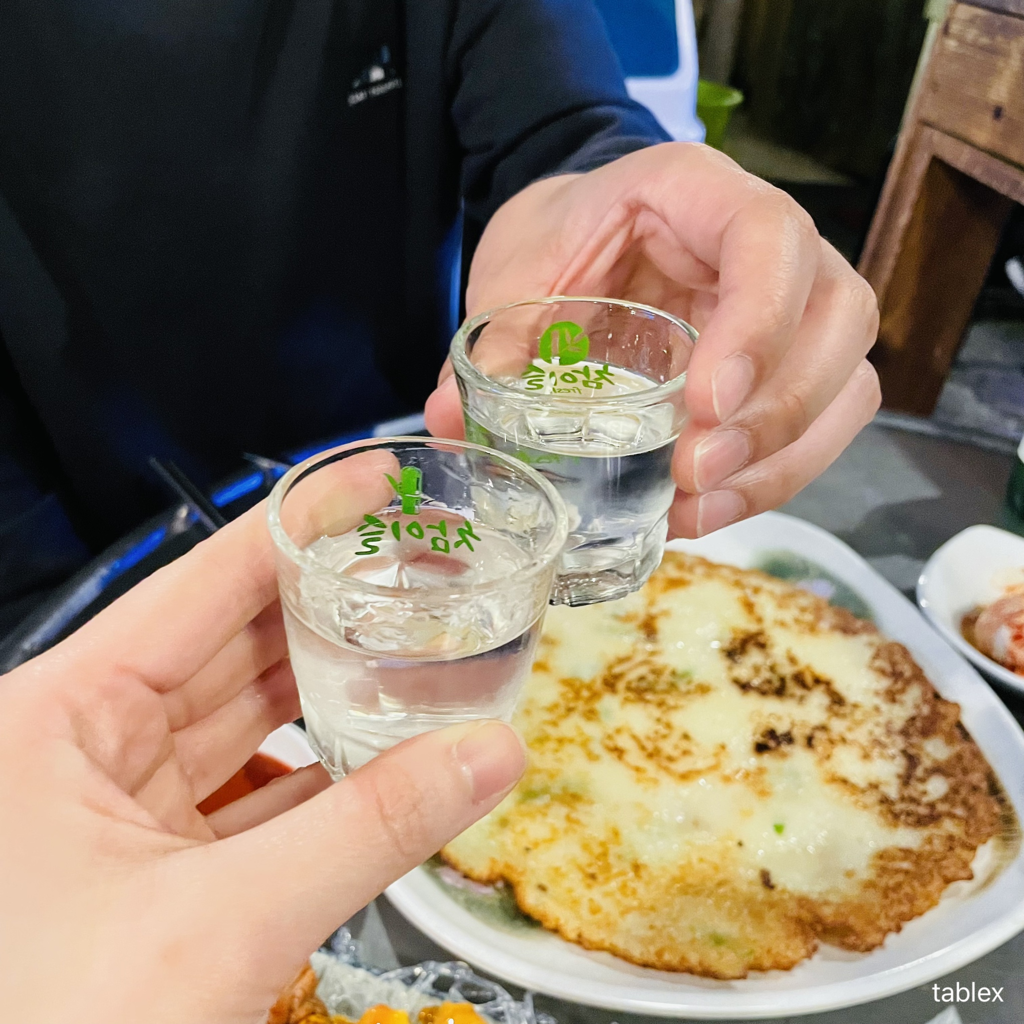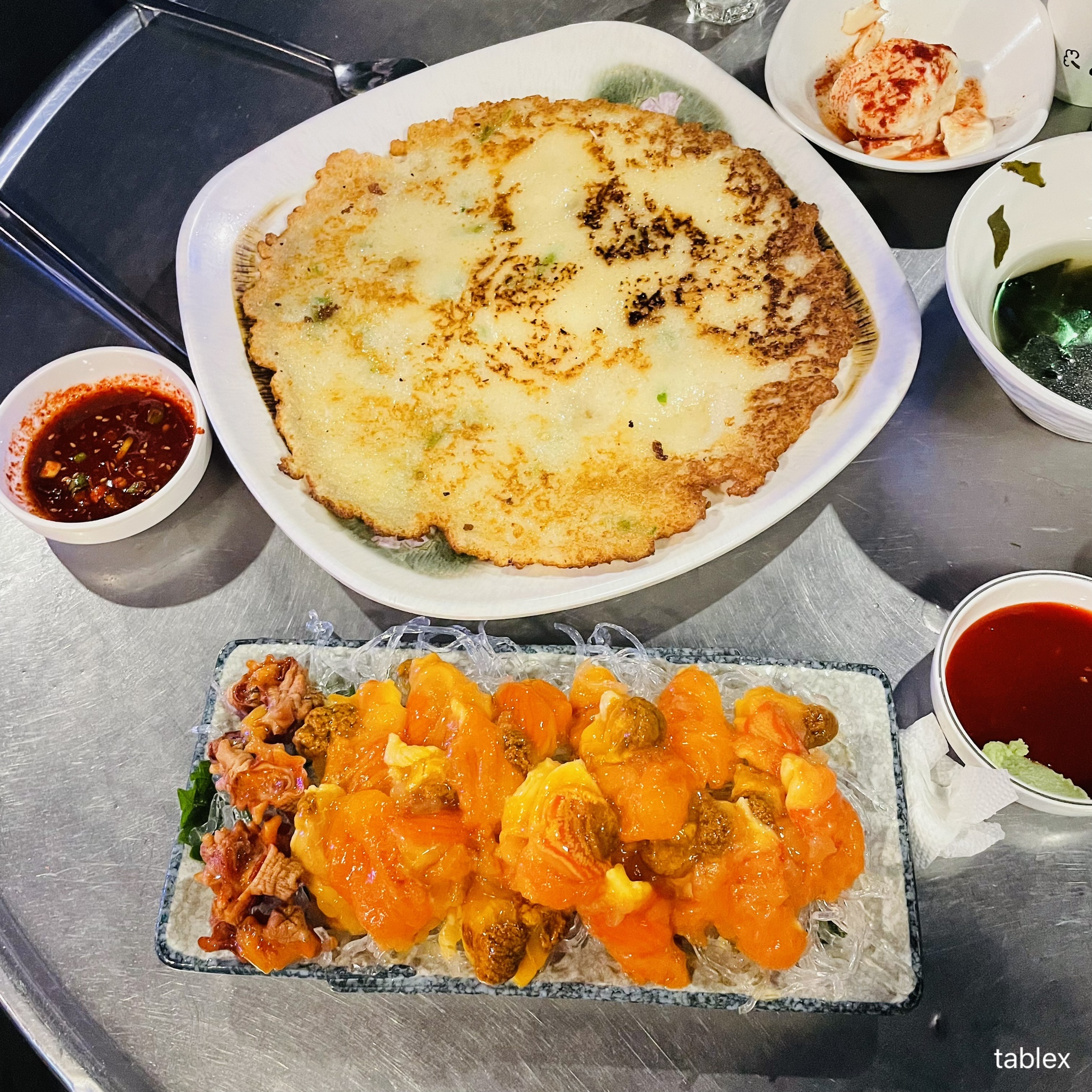감자전과 멍게 맛있게 실컷 먹고 일어났다.