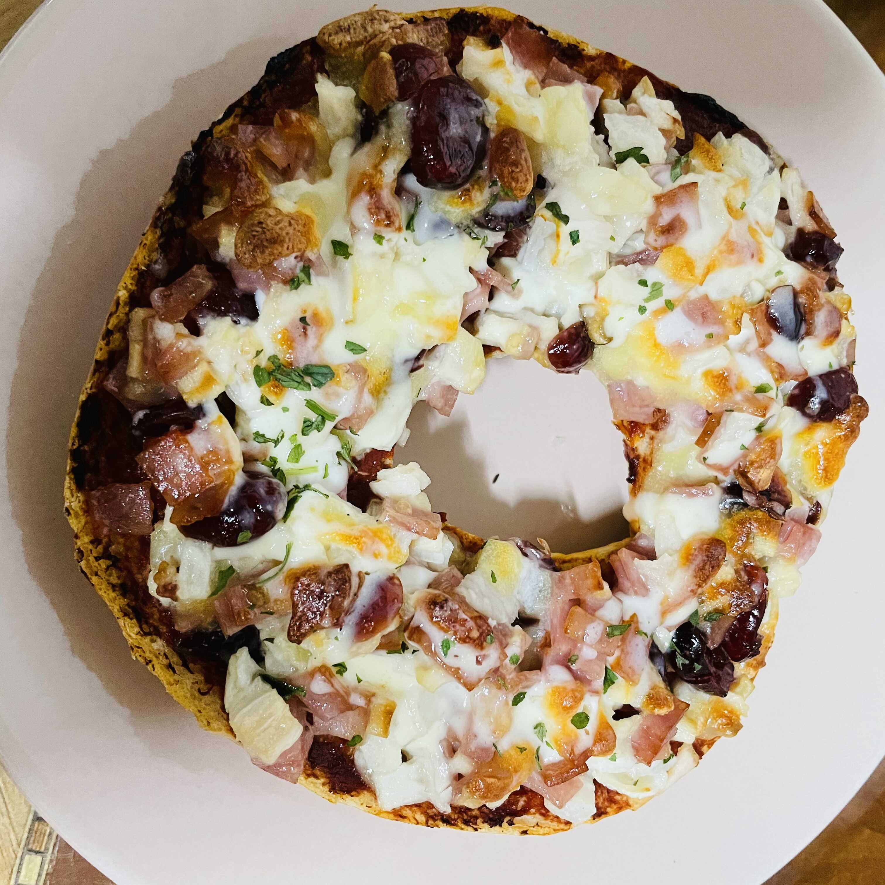피자빵을 일반 빵이 아닌 크랜베리가 들어간 부드러운 베이글에다 구워서 빵이 바삭하면서도 부드럽고 크랜베리가 맛의 변주를 주어 평소 피자빵 안 좋아하던 친구도 홀딱 반해버렸다.