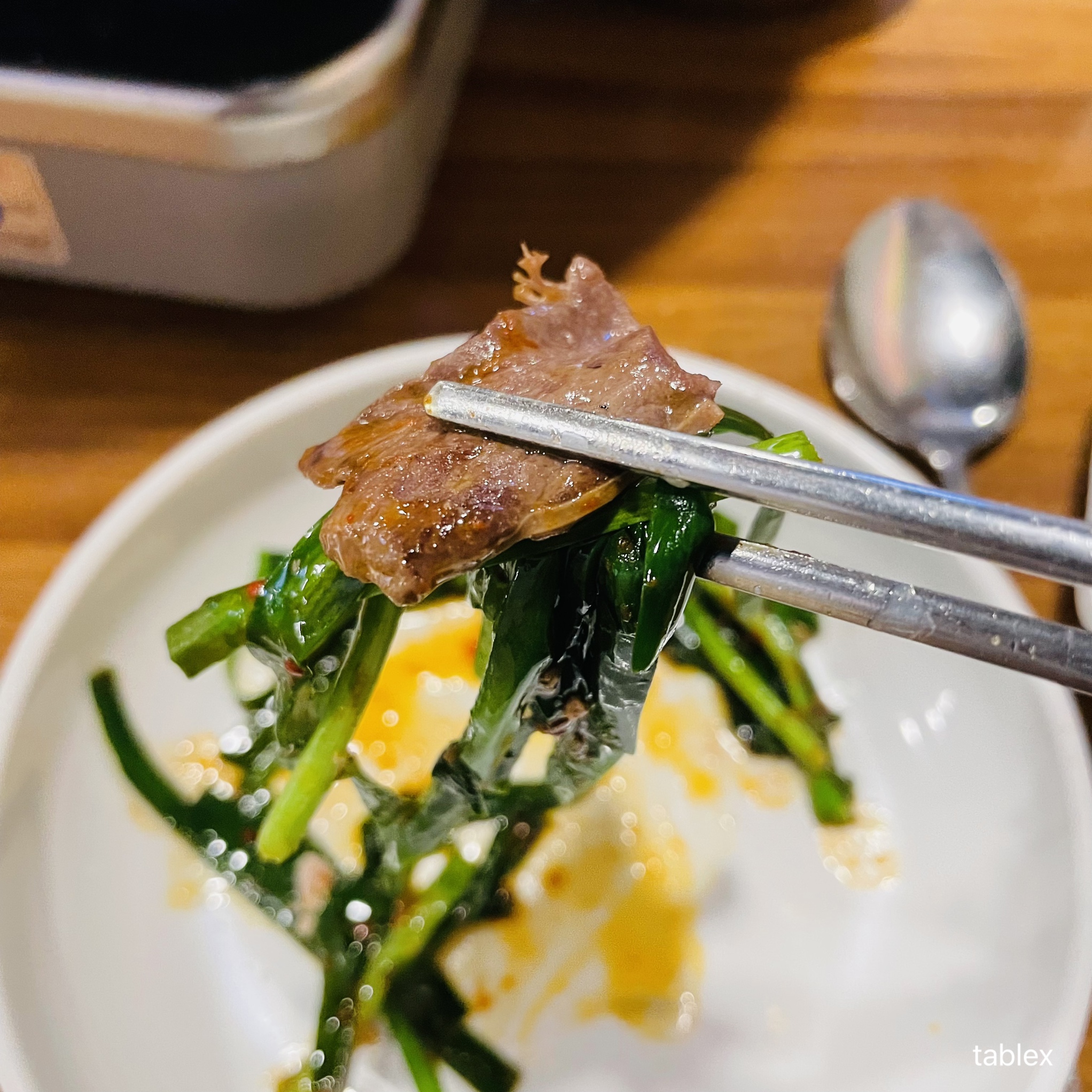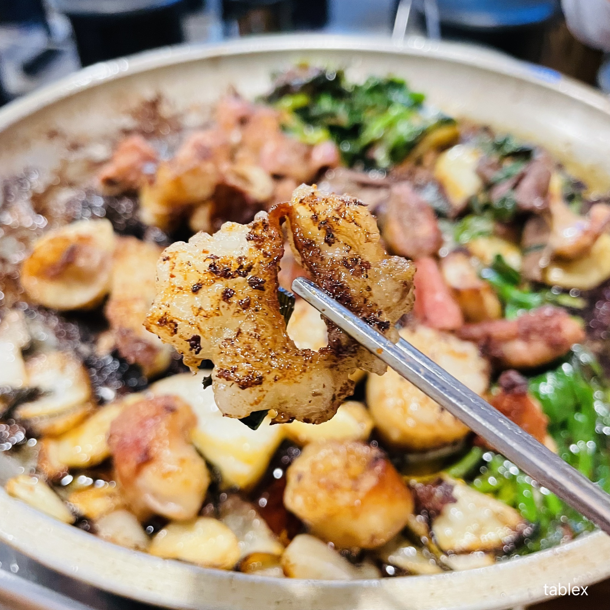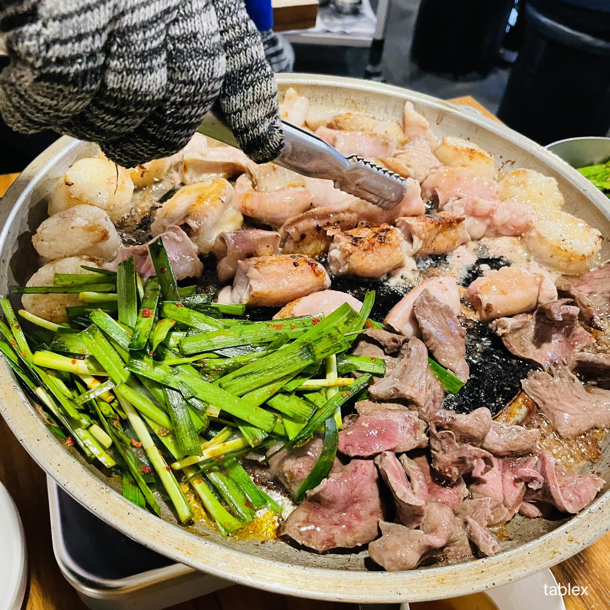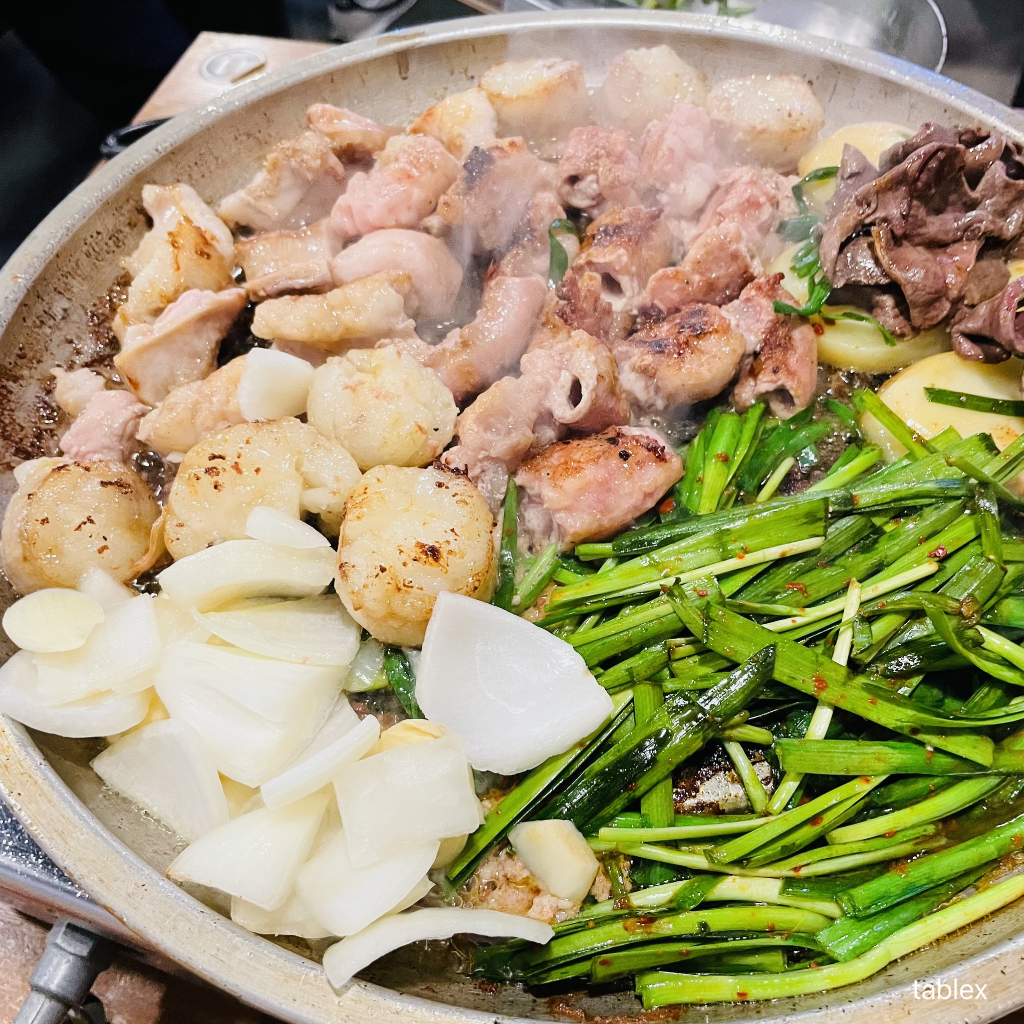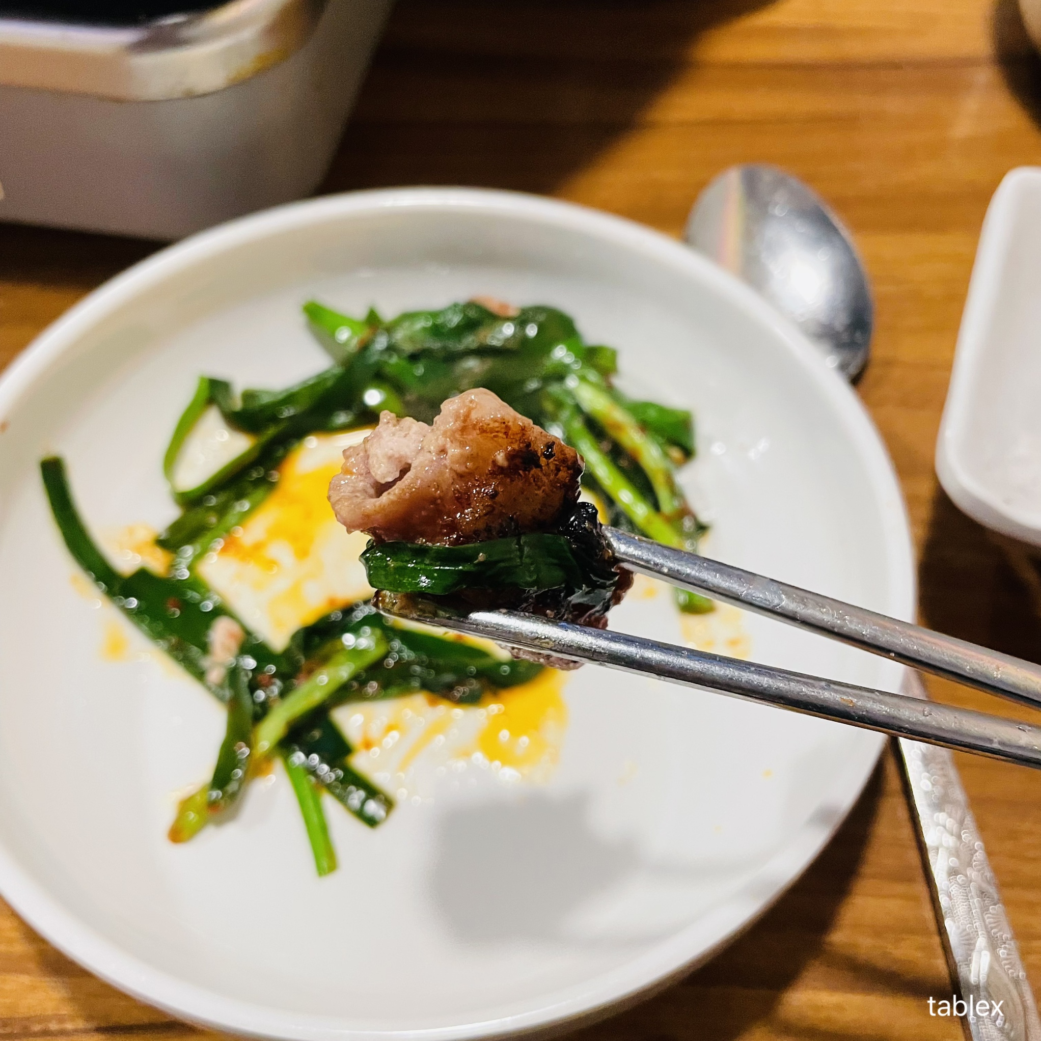 곱창이 살짝 두꺼워서 씹는 맛이 있었고 모듬구이 전체적으로 간이 되어 있던 것인지 부추만 함께 먹는데도 간이 딱 맞았다.
