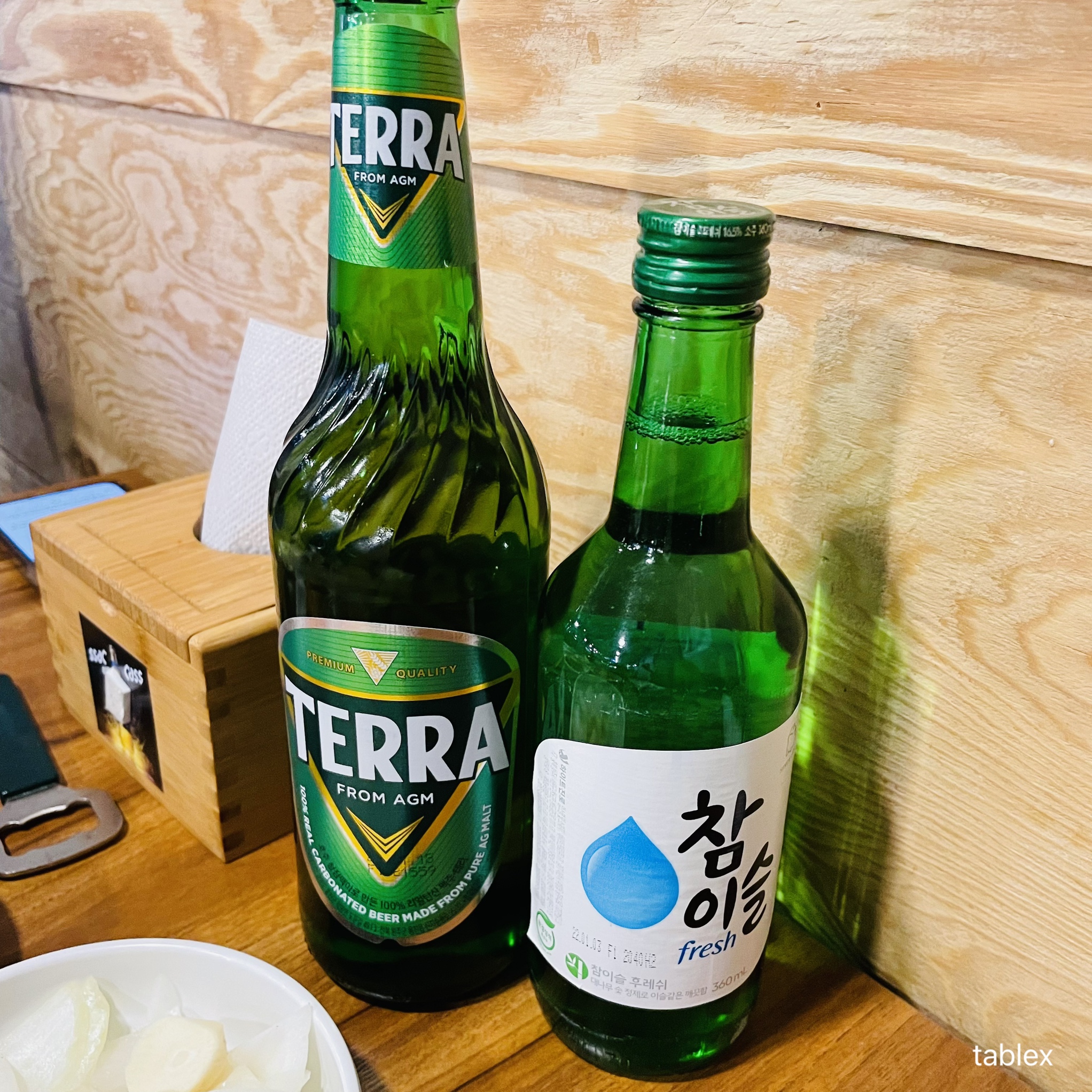 쏘맥 달려주기 위해 주문한 참이슬과 테라.